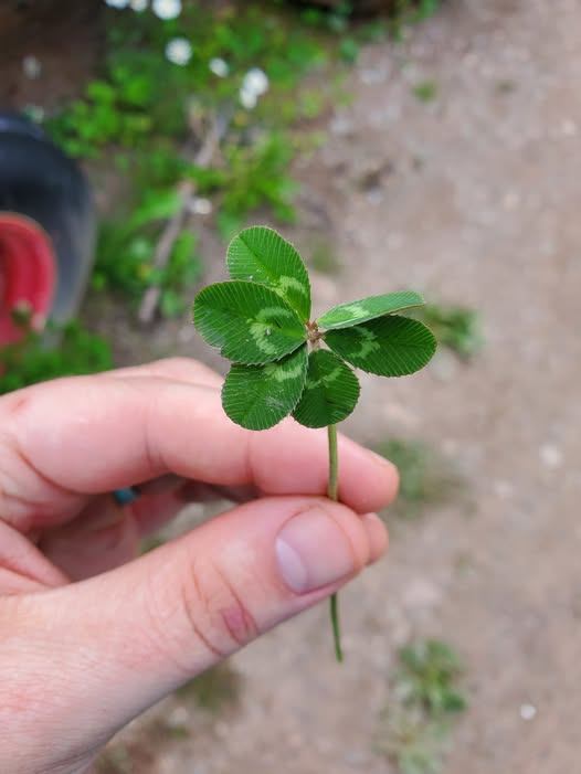 Jennifer texted in a few photos that were from the Summer of 2023, showing off her incredible streak of finding four‑, five‑, and even six‑leaf clovers. Most of us are lucky if we spot one four‑leaf clover in our entire lives, but Jennifer was basically running her own botanical lottery. Considering the odds of finding a four‑leaf clover are about 1 in 10,000, her collection is nothing short of wild.