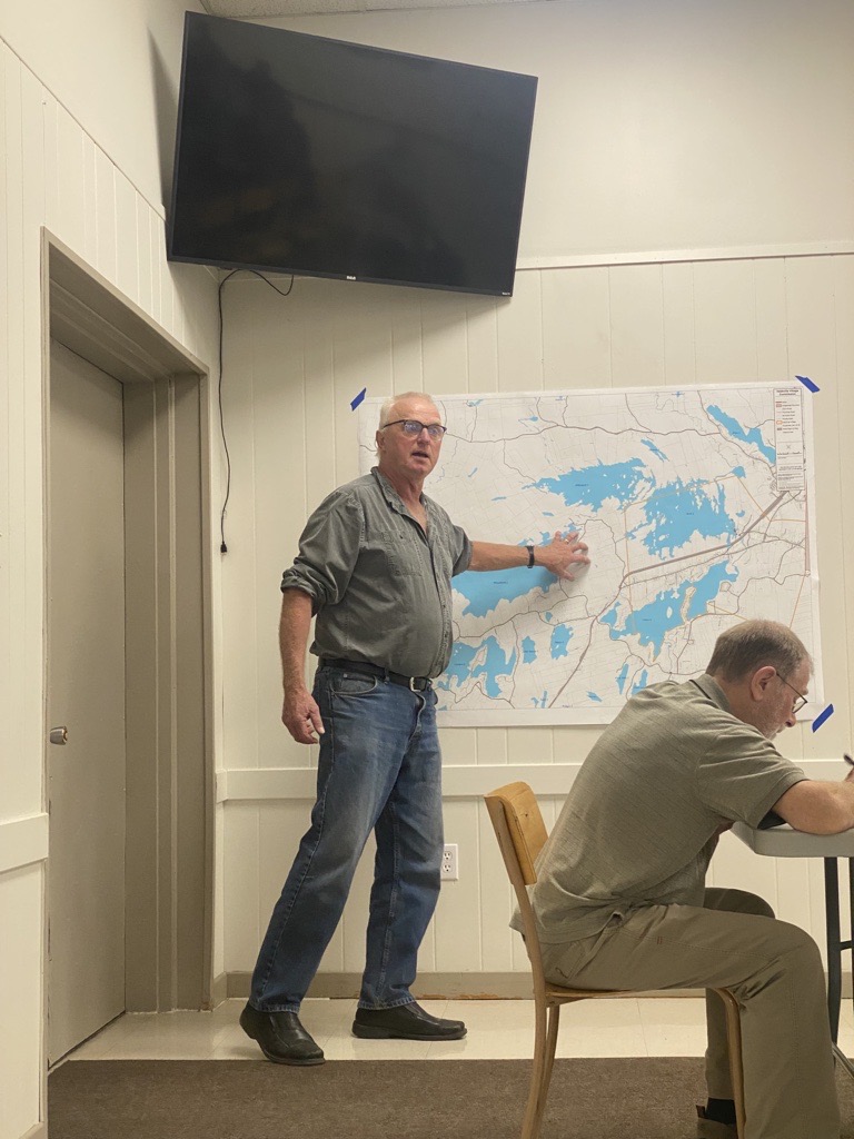 The over 100 people in attendance were then given a brief explanation of the Fancy Lake inflows and outflows. It was explained by Tufts and HVC Chair Jamie Richards that water flows into the lake from the Hebb Dam and the smaller Weagle Dam, while the only outflow is a relatively narrow stream that leads to the Petite Riviere.