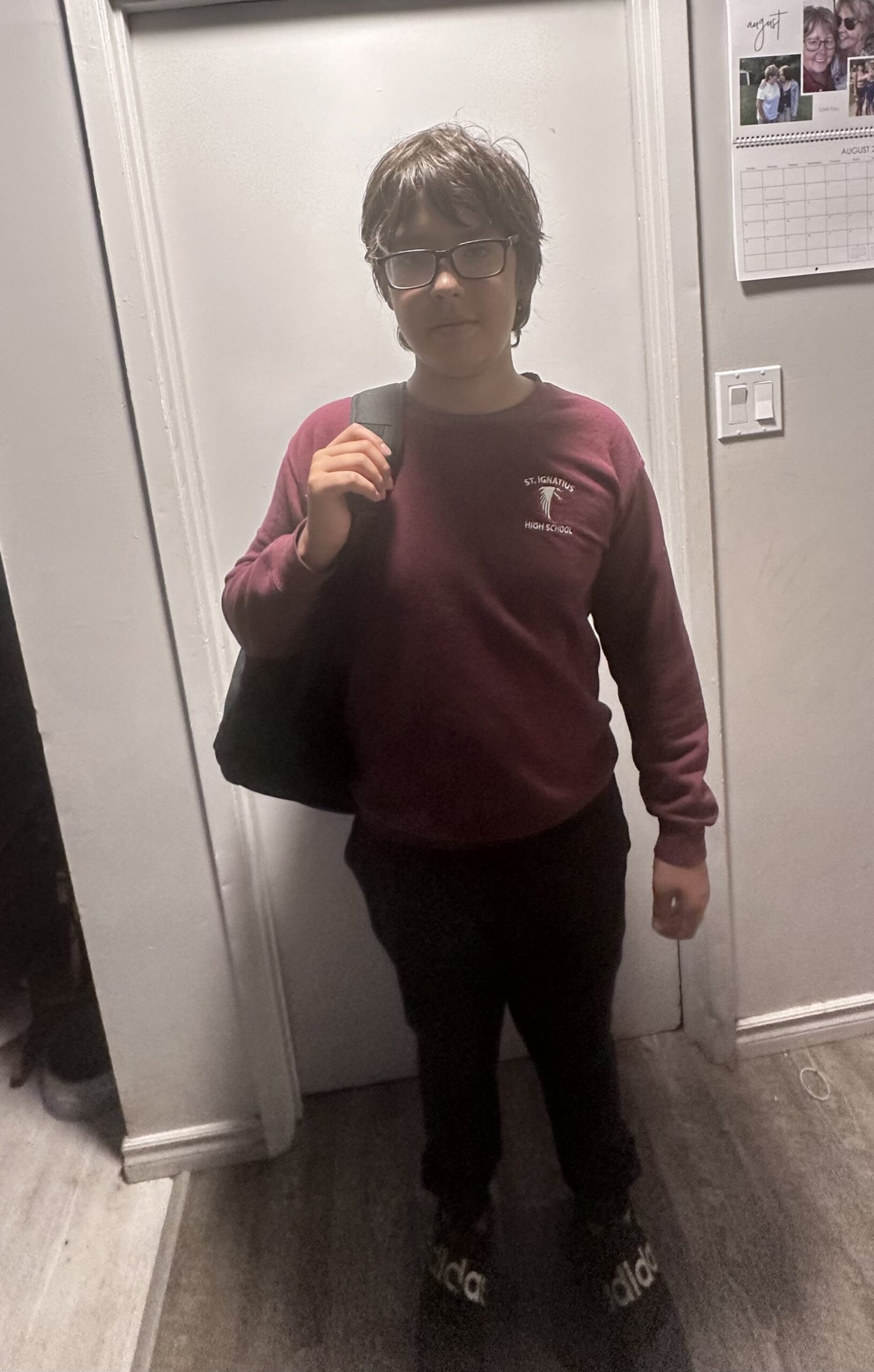 Wilfred was last seen wearing a burgundy St. Ignatius crewneck sweater, black pants, black glasses, and a black backpack.
