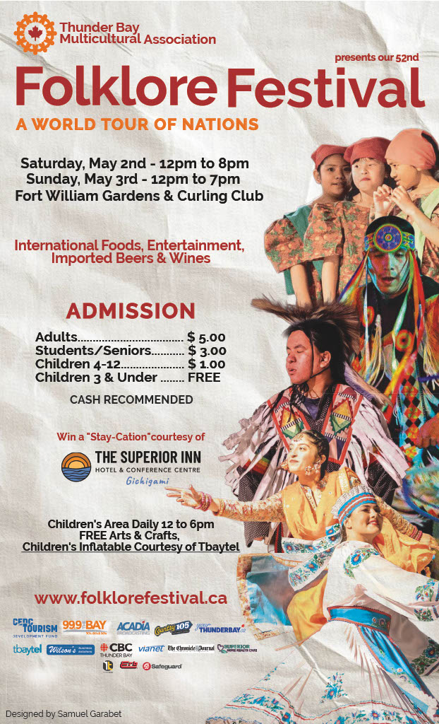 Travel the world without leaving Thunder Bay at the Folklore Festival. Enjoy international cuisine, live entertainment from Canada and beyond, cultural exhibits, local artists, vendors, and a children’s area with free activities and a bouncy castle.